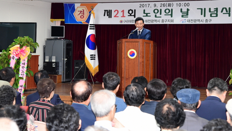 대전 중구는 26일 대한노인회 중구지회 2층 강당에서 ‘제21회 노인의 날 기념행사’를 개최했다.