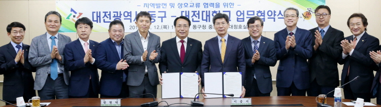 대전 동구가 12일 구청 10층 중회의실에서 대전대학교와 지역발전 및 상호교류 협력을 위한 업무협약을 체결했다.