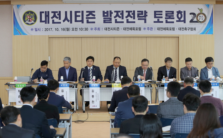 대전시티즌 ․ 대전체육포럼 ․ 대전축구협회 주최·주관으로 열린 이날 토론회는 정문현 충남대 교수, 김종천 시의원 등 9명의 토론자가 참석한 가운데 대전시티즌의 현 실태 진단과 발전방안 모색을 위한 주제발표와 토론이 진행됐다.