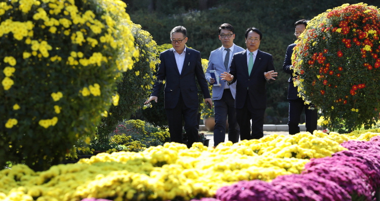 한현택 대전동구청장은 23일  추동 대청호자연생태관 방문해 '2017년 대청호반 국화전시회'의 성공을 기원하고 행사 관계자들을 격려했다(사진=대전동구)