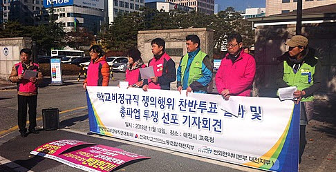 대전시내학교 비정규직노조연대가(이하 연대회의)오는 25일과 26일 양일간 진행하기로 했던 총파업을 일단 유보하기로 했다.