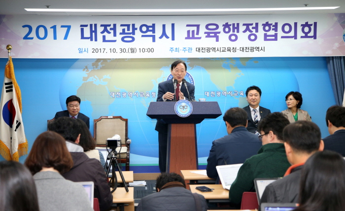대전시와 대전시교육청은 30일 교육청 회의실에서 권선택 시장과 설동호 시교육감이 참석한 가운데 대전교육행정협의회’를 열고 내년도 중학교 무상급식 전면 시행 및 분담비율 조정 등 17개 안건에 대해 합의했다