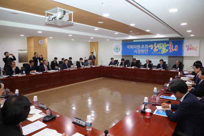 간담회는 권선택 대전시장을 비롯해 박범계 의원, 박병석 의원 이상민 의원, 이장우의원, 이은권 의원, 정용기 의원, 조승래 의원등 대전 지역 국회의원이 모두 참여했으며, 시공무원들도 자리를 함께 했다.