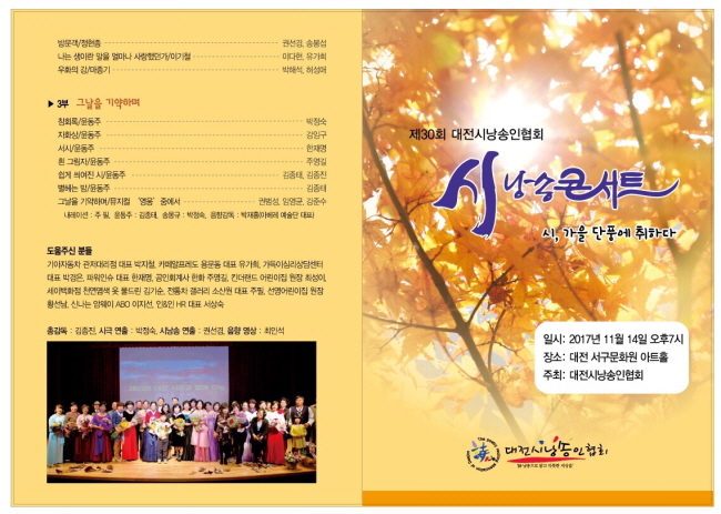 ‘시, 가을단풍에 취하다’를 주제로 준비한 이번 시낭송콘서트는 3부로 나눠 선보인다.