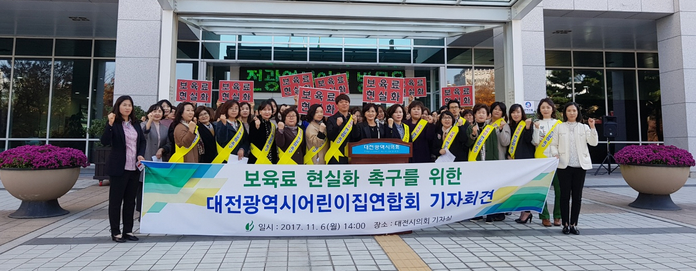 대전어린이집연합회는 6일 오후 2시 대전시의회에서 기자회견을 열고 “ 우리 아이들에게 정상적인 보육과 교육이 가능한 수준까지 보육료를 최소 23% 인상해 줄 "것을 촉구했다.