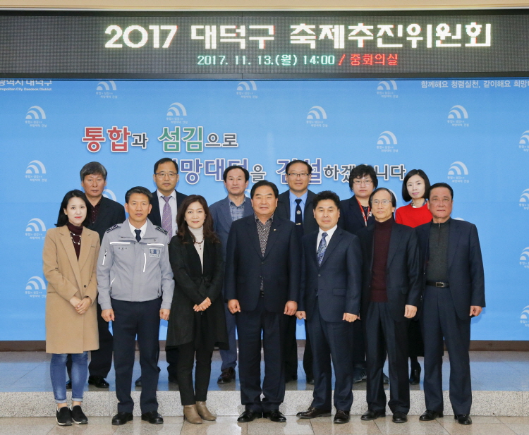 올해 축제 성과와 발전방안 논의 대전 대덕구는 13일,구청회의실에서 올 한해 개최된 축제에 대한 평가와 발전방안 논의를 위한 '대덕구 축제 추진 위원회 회의'를 개최했다.(사진=대전대덕구)대전 대덕구는 13일,구청회의실에서 올 한해 개최된 축제에 대한 평가와 발전방안 논의를 위한 '대덕구 축제 추진 위원회 회의'를 개최했다. 저작권자 © SJB세종TV 무단전재 및 재배포 금지 김서준 기자 다른기사 보기 페이스북 트위터 카카오톡 네이버블로그 구글+ URL복사 기사공유하기