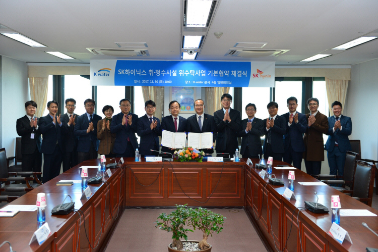 한국수자원공사(K-water)가 30일, K-water 본사(대전광역시)에서 SK하이닉스와 “SK하이닉스 남한강계통 취·정수시설 위·수탁 사업 기본협약”을 체결했다.