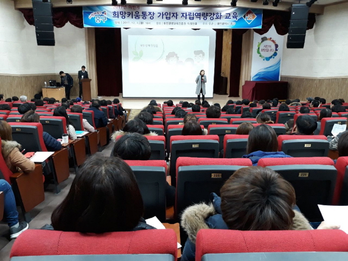 대전 중구는 4일 대전평생교육진흥원 식장산홀에서 희망키움 통장가입자 300명을 대상으로‘2017년 하반기 희망키움통장2 가입자 자립역량강화교육’을 실시했다.고 밝혔다.
