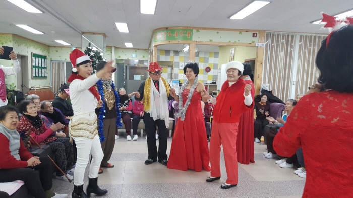 매월 첫째 주 수요일 2시~3시면 행복 봉사단(단장: 임채원)이 단원들과 함께와 갖가지 재능으로 이들을 즐겁게 해주고 있다. 임 단장은 이름 잘 짓는 곳으로 이미 정평이 나 있는 ‘대전 작명소’(010-3295-0072)를 운영하고 있으며, 단원들 7`8명 가운데는 86세 된 단장의 친정어머니도 계시다. 모녀가 함께와 이곳의 공성신퇴한 노인들에게 지치고 소외된 마음을 힐링해 주고 있는 것이다.