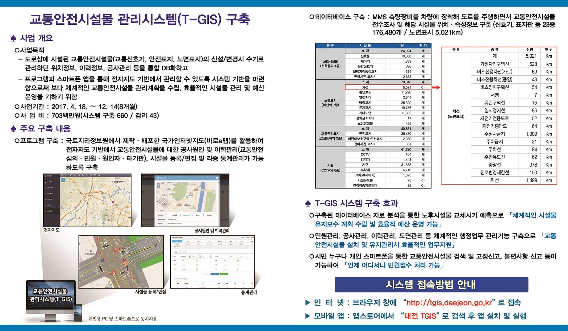 GIS정보기술을 활용해 교통안전시설물을 관리하는 시스템(T-GIS)'이 구축 됐다.
