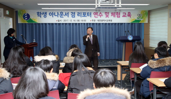 대전시교육청 지난 16일 시교육청 브리핑룸과 스튜디오에서 학생 아나운서 겸 리포터 연수생을 대상으로 체험교육을 실시했다.