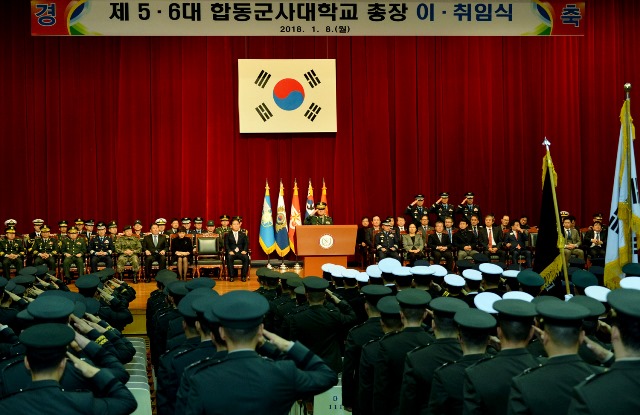 합동군사대학교(총장 육군 소장 조한규, 이하 합동대)는 1월 8일 대학교 충무관 대강당에서 서주석 국방차관 주관으로 제 5ㆍ6대 합동군사대학교 총장 이ㆍ취임식을 거행했다.