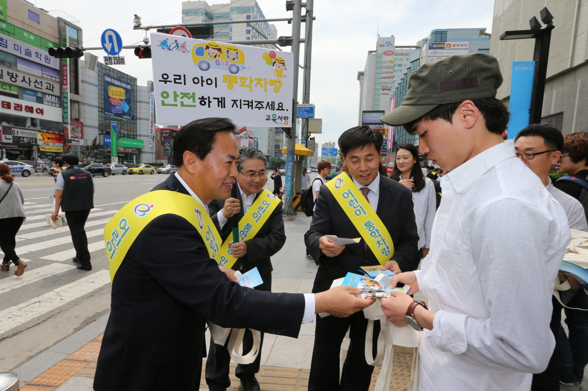 충남도교육청(교육감 권한대행 부교육감 전찬환)은 5월 31일 천안 고속터미널 앞에서 전찬환 부교육감과 간부공무원, 천안 관내 녹색어머니회와 각종 학부모 단체, 학원연합회, 사립유치원연합회 등이 참석한 가운데 “어린이 통학차량 안전 캠페인”을 가졌다.