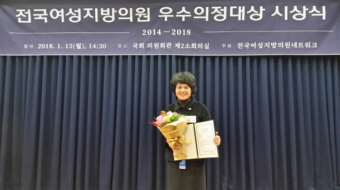 조의원은 수상 소감에서 “너무 큰상을 수상하게 되어 영광으로 생각한다”며 “앞으로 양성평등과 구민의 인권향상을 위해 더욱 더 노력하겠다“고 말했다.