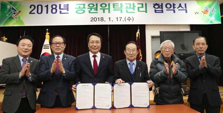 대전 동구는 17일 정동 소재 대한노인회 동구지회에서2018년 공원위탁관리 협약식을 가졌다.