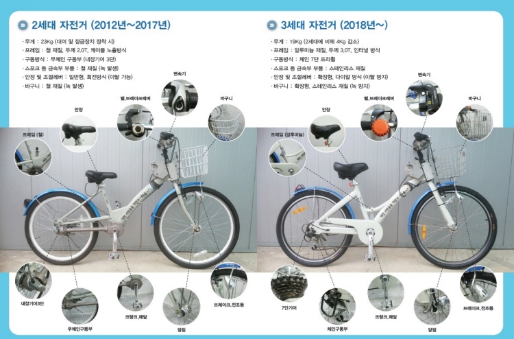 또, 안장 높낮이를 보다 편리하게 조절할 수 있도록 개선됐으며, 고장이 잦은 벨과 녹이 많이 발생하는 바구니도 새로운 재질로 교체했다.