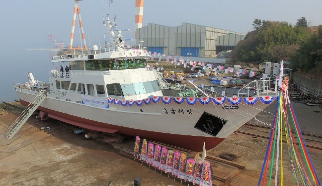 충남도는 18일 경남 거제에서 박정주 도 해양수산국장과 이영춘 아시아조선 대표이사 등 30여명이 참석한 가운데 충남해양호 진수식을 개최하고, 충남해양호 탄생 축하와 안전 항해를 기원했다.