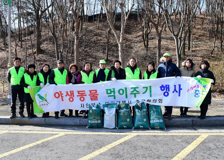 대전 중구는 23일 침산동 소재 유등천과 교통광장 인근 야산에서 ‘야생동물 먹이주기’행사를 개최했다.