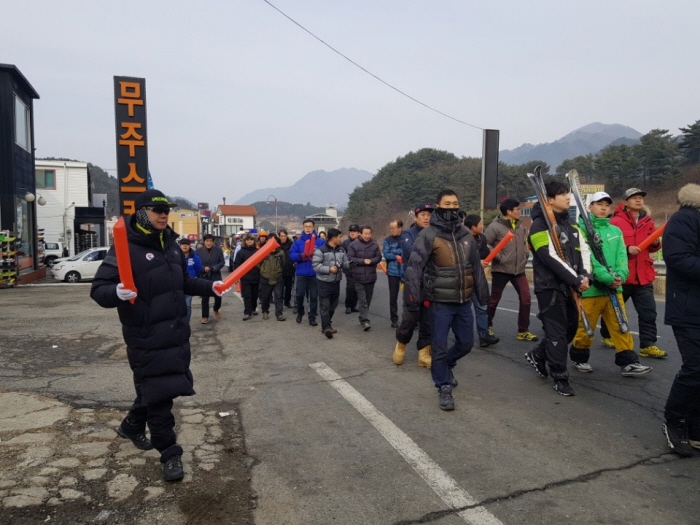 지난달 29일 상인인들은 상권이 밀집돼 있는 리조트 삼거리를 돌며 '스키 페스티벌 퍼레이드'에 나섰다.