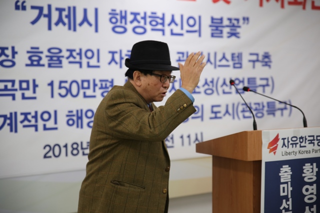 자유한국당 여의도연구원 정책자문위원회 뉴미디어전략분과부위원장인 황영석 거제시 발전연구회장(60)은 지난 2월 2일 오전 11시 00분~ 오후 12시 00분까지 거제시청 브리핑룸에서 “거제시 행정혁신의 불꽃”이라는 대표공약을 중심으로 출마선언의 배경과 기자회견을 가졌다.