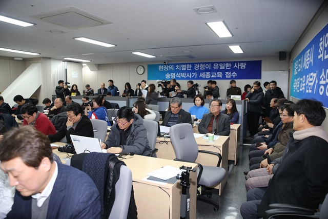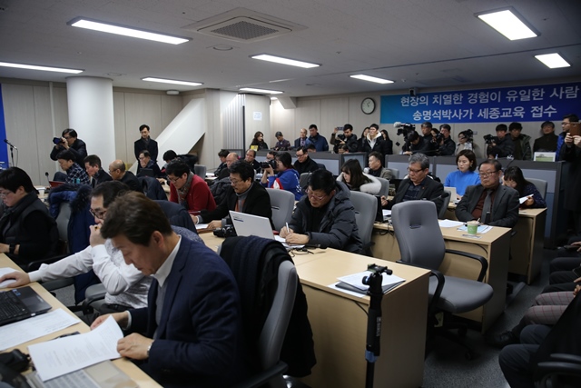송명석 박사(55세,세종교육연구소장)는 독립선언일인 8일 세종시청 2층 브리핑 룸에서 2018년 6월 13일에 실시하는 전국 동시 지방선거 중 세종특별자치시 교육감 예비후보로 출마 기자회견을 가졌다.