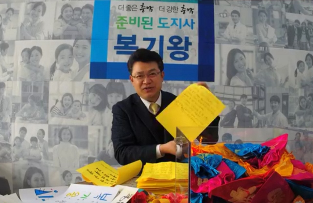 행복주머니는 복 예비후보가 출마선언 한 이후 천안, 아산, 홍성, 예산 등 민생 현장을 다니면서 만난 인사와 시민, 지지자들이 복 예비후보에게 바라는 사항 등을 복주머니에 넣어 응원한 것이다.