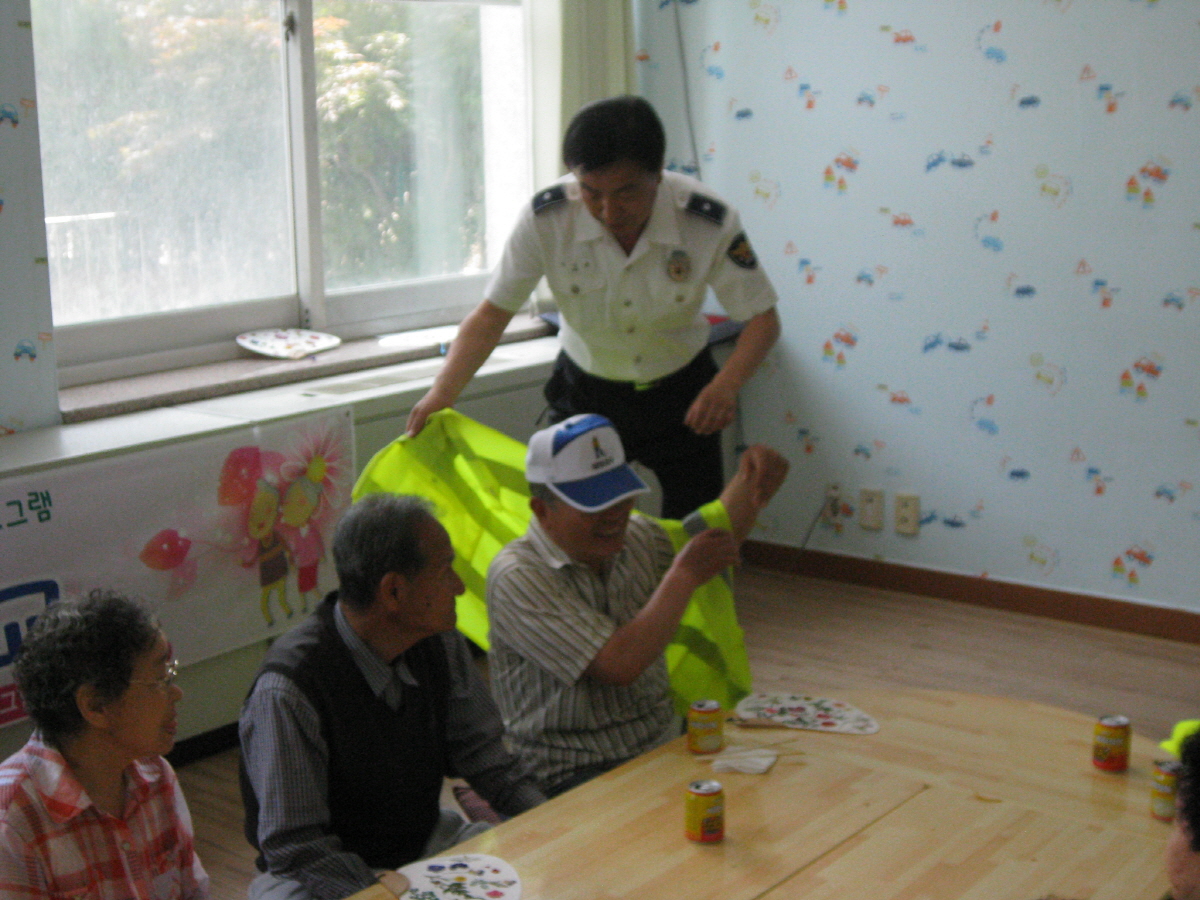대전서부경찰서(서장 김재선)는 7일 오전 11시 서구 관저동 관저사회복지관을 방문, 지역 독거노인 20명을 상대로 자체 제작한 야광형광 조끼 및 효자손 등을 배부하며 어르신 눈높이에 맞는 교통홍보 교육을 실시했다.