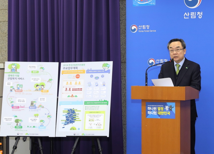 산림청 한국산림복지진흥원은 28일 정부대전청사 통합기자실에서 브리핑을 통해 ‘2018년 주요업무계획’을 발표했다.