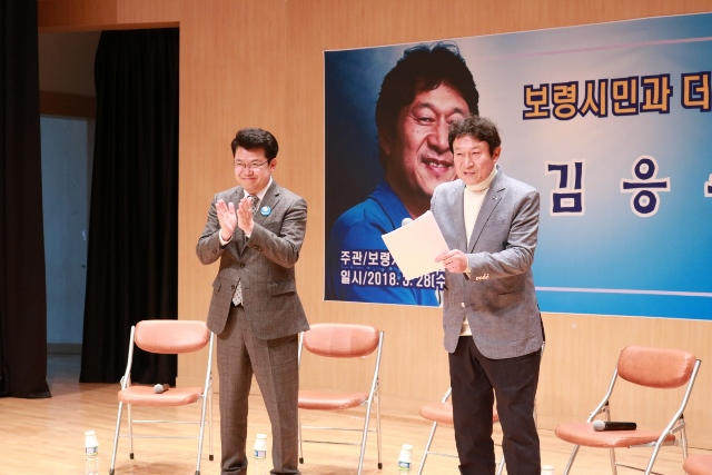 이날 토크쇼는 보령출신 배우인 김응수 씨의 사회로 진행됐고 복기왕 충남도지사 예비후보를 비롯, 김기호, 이시우, 최진복 보령시장 예비후보가 출연했다.