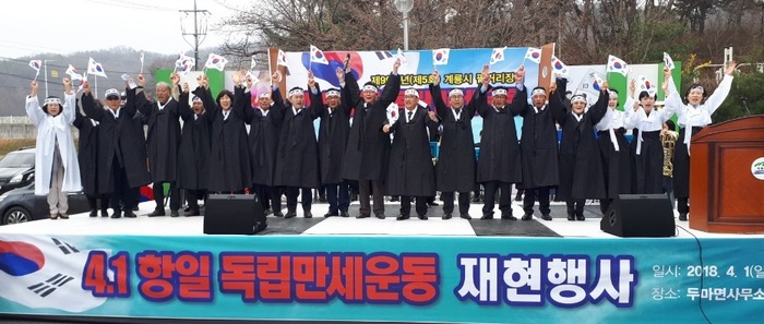 광복회 계룡금산연합지회는 제99주년 3·1절 정신을 계승하고자 4월 1일 오전 11시 두마면사무소에서 ‘제5회 두계장터 4‧1 항일 독립만세운동’ 기념행사를 개최했다.