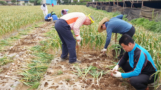 서산을 대표하는 농특산물 6쪽마늘 수확이 시작됐다.