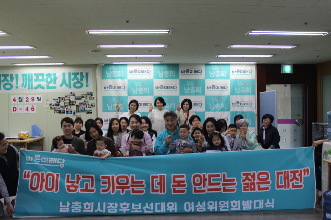 발대식에서 여성위원들은 국공립과 사립 유치원 아이들 모두 똑같이 학비 부담 없이 교육시킬 수 있어야 한다며 남 후보 ‘유치원 무상교육’ 정책을 지지했다.