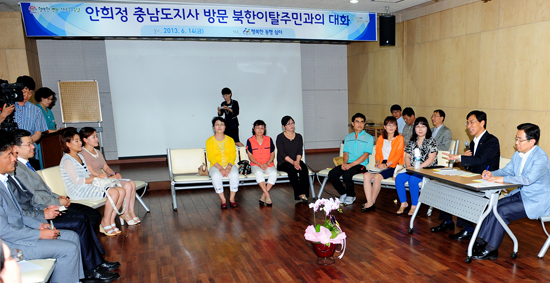 도는 이날 아산시 안희정 도지사와 탈북주민 간 대화의 시간을 갖고 탈북주민 정착지원 사업에 대한 생생한 의견수렴의 기회를 가졌다.