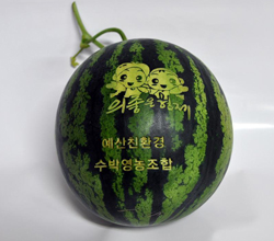 예산 친환경 수박영농조합(대표 이관수, 신양 불원리 소재)은 수박 겉표면에 소비자가 원하는 글씨와 문양을 새겨 에어캡(공기완충제)으로 안전하게 포장한 뒤 택배발송하는 서비스를 실시하고 있어 화제다.