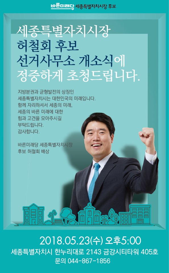 한편, 허철회 바른미래당 세종시장 후보는 자신의 정책과 관련 주 1회 공약 발표를 실시하며 자신의 공약을 시민에게 적극 알리겠다고 밝혔다.