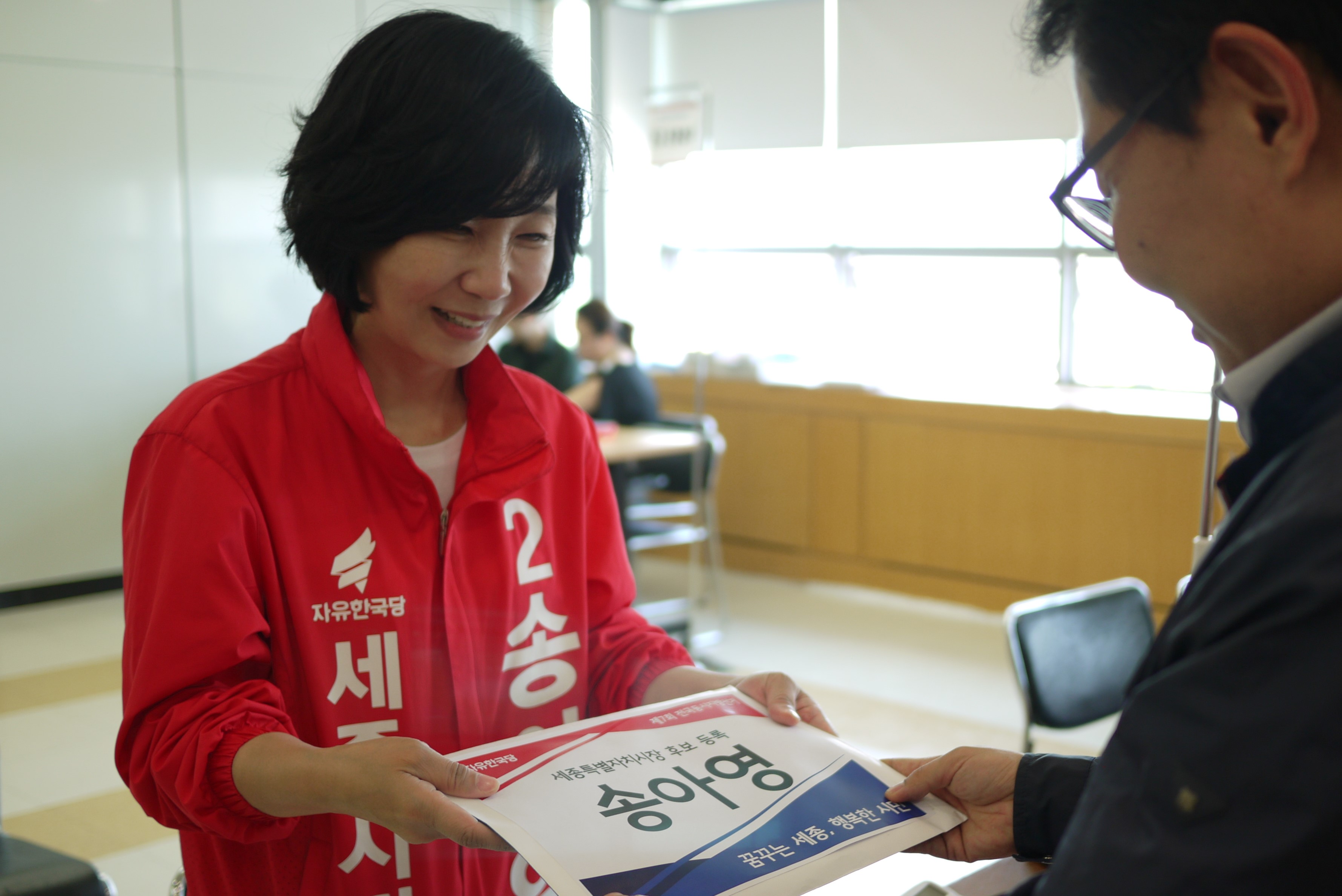 송아영 자유한국당 세종시장 후보는 후보 등록 첫 날인 24일 오후 3시, 세종특별자치시선거관리위원회에서 지지자들과 함께 후보 등록을 마쳤다.