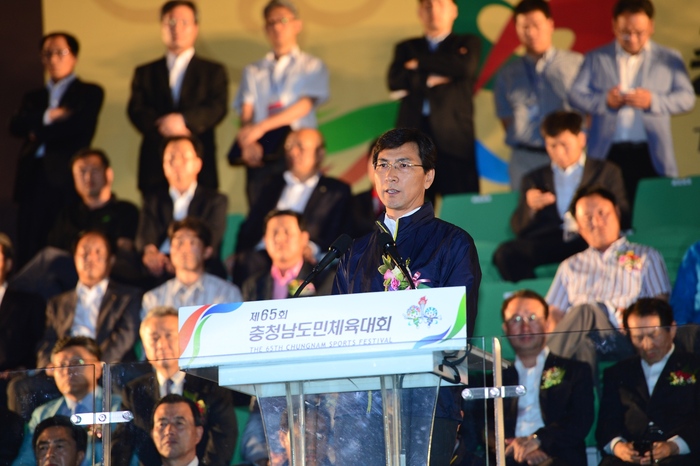 13일 홍성군 홍주종합경기장에서 열린 제65회 충남도민체전 개막식에서 대회사를 하는 안희정 충남도지사. 저작권자 © SJB세종TV 무단전재 및 재배포 금지 세종TV 다른기사 보기 페이스북 트위터 카카오톡 네이버블로그 구글+ URL복사 기사공유하기