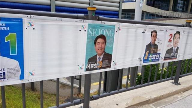 아름동복합커뮤니티센터 뒤편의 선거 벽보에는 기호2번 송아영 후보의 벽보만 빠져있으며, 나성동 LG전자 앞 선거현수막은 흔적도 없이 사라졌다. 또한 죽림오거리에 걸려 있는 현수막에는 ‘선관위 현수막 표지 스티커’만 없어졌다.