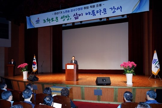 노 구청장은 인사말에 앞서 구민과 구 직원들에게 감사의 말을 전했다. 그는 “여러분의 변함없는 지지와 응원을 바탕으로 민선 5·6기를 마무리하고 민선 7기 강서구정의 돛을 올렸다”며 “여러모로 부족한 저에게 3선 연임이라는 과분한 영광과 함께 막중한 소임을 맡겨주신 구민 여러분과 공직자 여러분 모두에게 깊은 감사의 말씀을 드린다”고 했다.