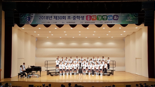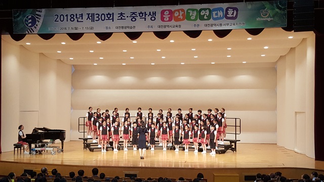 대전동·서부교육지원청(교육장 최경노, 배영길)은 7월 9일(월)부터 7월 13일(금)까지 5일간 대전평생학습관 대강당(어울림홀)에서 2018년 제30회 초ㆍ중 학생음악경연대회를 개최한다고 밝혔다.