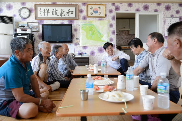 세종시 폭염특보가 발효된 가운데 이춘희 세종시장이 20일 전동면 석곡리 경로당 무더위 쉼터를 방문했다.