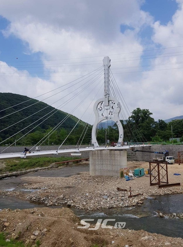 건설중인 사장교 주탑은 자연속에 소풍같은 축제를 지향하는 군의 음악사랑에 대한 높은 의지와 군민간의 화합을 상징하는 기타모양에 기타줄을 연상케하는 와이어 줄이 각 14줄씩 양쪽 다리상판과 연결된다.