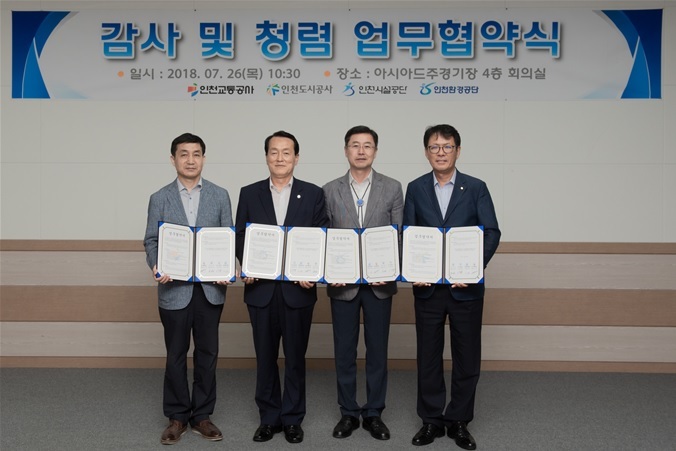 인천시설공단(이사장 이응복)이 최근 인천환경공단(이사장 이주호), 인천교통공사(사장 이중호), 인천도시공사(사장 황효진)와 본사 회의실에서‘감사 및 청렴 업무협약’을 체결했다.
