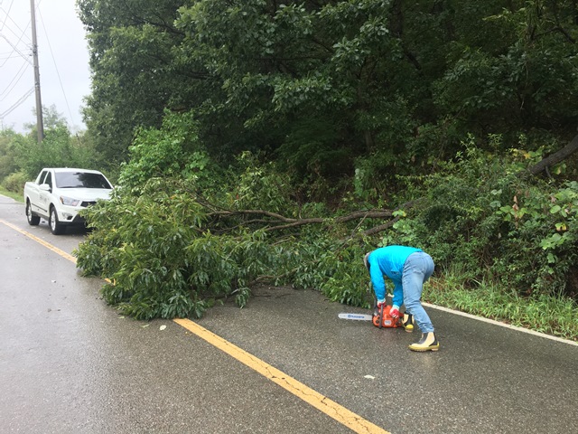 세종특별자치시 금남면(면장 김홍영)은 24일 금천리 일대 도로에 태풍 ‘솔릭’의 영향으로 부러진 나무를 긴급하게 조치했다. 저작권자 © SJB세종TV 무단전재 및 재배포 금지 서기원 기자 다른기사 보기 페이스북 트위터 카카오톡 네이버블로그 구글+ URL복사 기사공유하기