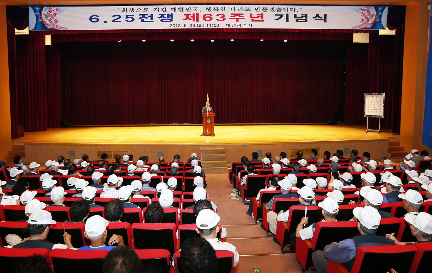 대전시는 25일 오전 11시 대전광역시청 대강당에서 전쟁의 역사적 교훈을 되새기고 자유 수호를 위해 헌신한 참전용사들의 넋을 기리는‘제63주년 6·25전쟁 기념행사’를 가졌다.