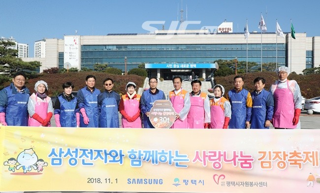 평택시자원봉사센터(사무국장 홍음희)는 지난 1일 시청 분수광장에 ‘2018 삼성전자와 함께하는 사랑나눔 김장축제’를 열었다.