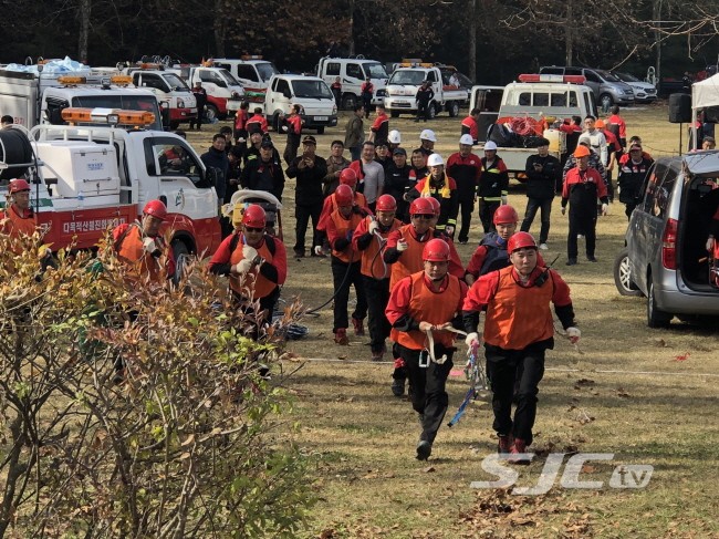 【세종TV-김광무 기자】금산군이 지난 5일 세종시 산림자원연구소에서 열린 2018 산불지상진화경연대회에 참가하여 2년 연속 충남도 총 15개 팀 중 2위를 차지했다.