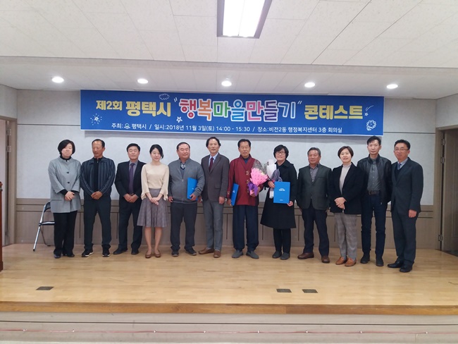 평택시(시장 정장선)는 지난 3일 읍·면 마을 주민들이 자발적으로 추진하고 있는 행복마을 만들기 우수 사례를 발굴 확산하고, 마을간 선의의 경쟁과 학습을 통한 행복하고 활력있는 마을 만들기를 유도하고자 『제2회 평택시 행복마을 만들기 콘테스트』를 개최했다.