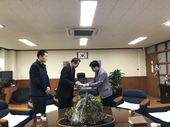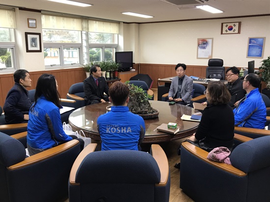 안전보건공단(강원동부지사) 지사장, 부지부장, 담당자 등 6명 학교 교장, 교무부장, 행정 담당자 등 4명, 2018.11.8.(목) 09:00~10:00에 강릉오성학교에서 연말연시 이웃사랑 나눔의 활동으로 장애인 부모 슬하 장애인 중학교, 고등학교 가정당 50만 원씩 지급하고 위문품 전달에 요즘 싸늘해진 날씨에 훈훈한 온정이 느껴진다.
