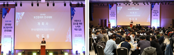 전국 보건관리자 650여 명이 참석한 가운데 사망사고 감소를 위한 정책에 부응하고 모든 역량을 집중할 것을 결의했다. [의사, 간호사, 산업위생전문가로서 노동자의 업무상 질병 예방을 위해 사업장 순회 점검, 감염자의 요양 지도·관리, 작업방법의 공학적 개선, 재해 발생 원인 조사·분석 및 재발 방지를 위한 기술적 보좌 및 조언·지도를 하는 사람 (산업안전보건법 제16조)] 또한, 보건관리자 역량 강화를 위해 산업 보건의 과거와 현재, 미래를 담은 특강과 직업 건강 분야별 강좌가 진행됐다.